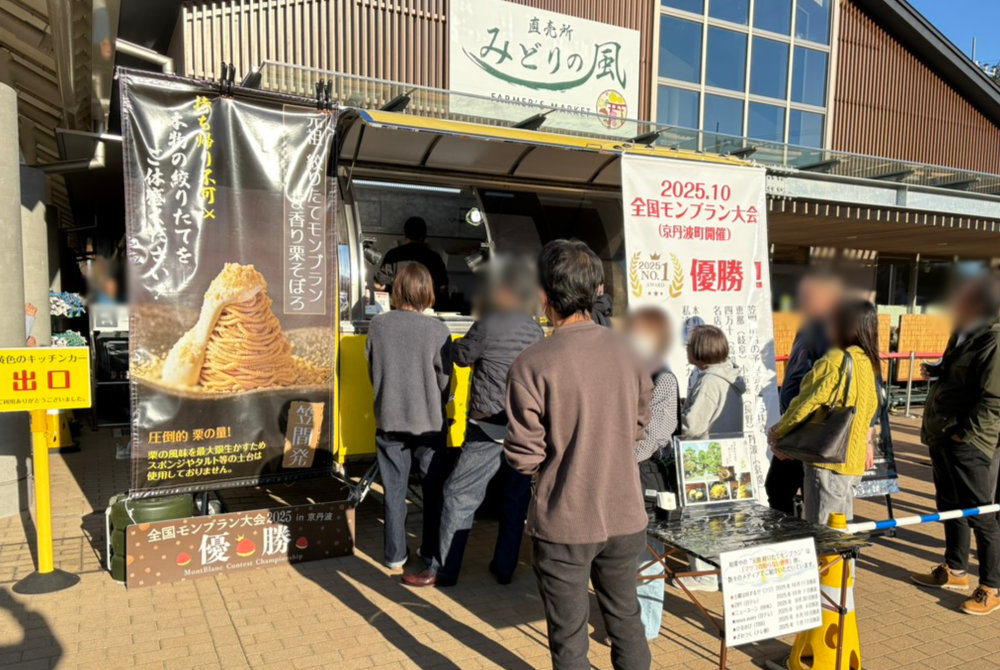 平日にも関わらず、「元祖しぼりたてモンブラン」のキッチンカーに行列が。