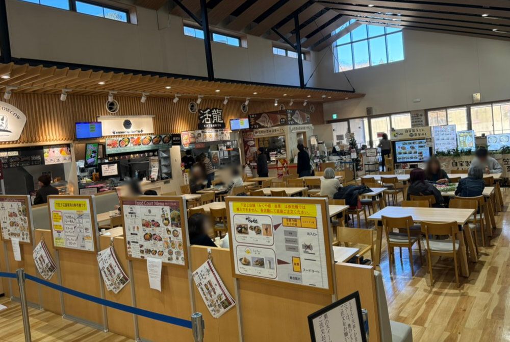スイーツやラーメン、地元のお肉をつかったハンバーグや、和食レストランなどが並んでます。
