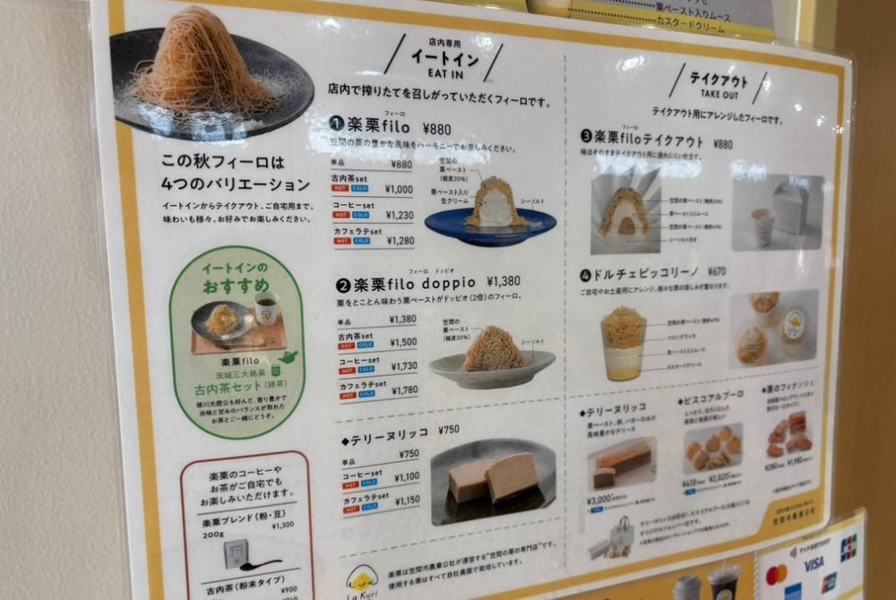 こちらのメニューは「笠間の栗専門店 楽栗 La Kuri」さんのもの。