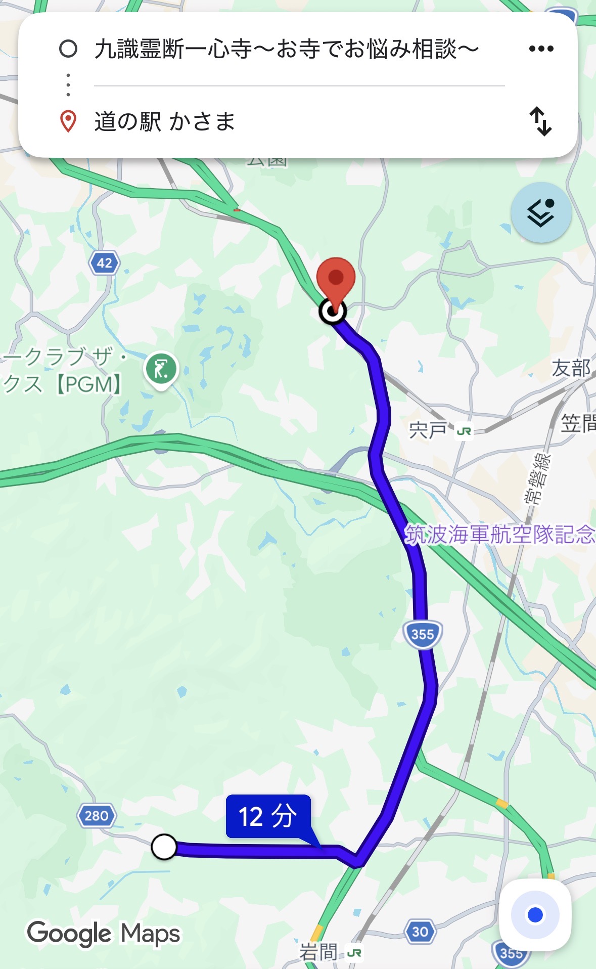 一心寺から道の駅かさままでは、車でおよそ12分ほどです。